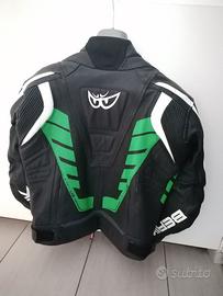 TAGLIA 50, in pelle bovina di alta qualità. Con protezioni certificate CE (livello 1) su spalle e gomiti. Tessuto elastico Super Tense -tex sui gomiti.