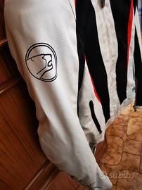 Vendo giacca moto Bering, in tessuto, colore bianco con inserti colorati neri e rossi, taglia 42, completa di protezioni.