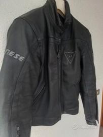 Giacca moto DAINESE in pelle nera con protezioni gomiti e spalle, trapuntino staccabile taglia 46.Misure: Lunghezza manica da spalla cm62 spalle cm 45 lunghezza cm 56