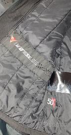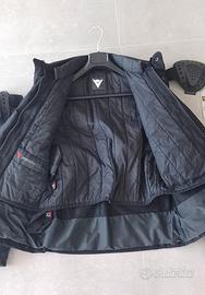 Giacca da moto Dainese modello uomo taglia 50 in condizioni usate con normali segni di utilizzo e dovuti al tempo, le foto sono parte integrante della descrizione. Completa di imbottitura invernale removibile e protezioni per spalle e gomiti. Larghezza spalle 48cm, lunghezza maniche 62cm, lunghezza giacca 58 cm