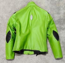 vendo giacca della Dainese da moto in pelle colore verde Kawasaki con dettagli in pelle nera da donna taglia 42