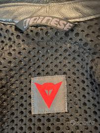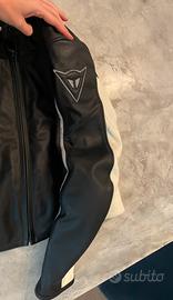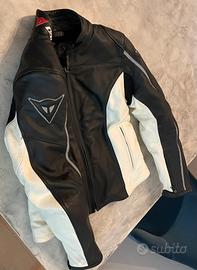 Giacca moto Dainese da donna, in pelle, nera e bianca con cerniera. Due tasche laterali e una tasca interna. Utilizzata solo 2 volte, ottime condizioni Taglia 42