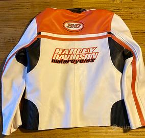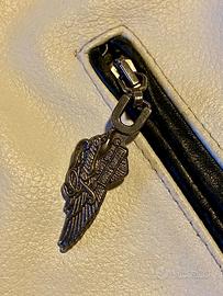 Giacca in pelle Vintage H-D , cerniere perfette , tessuto traspirante interno , in pelle spessa , giacca di taglia S ma veste come M . Morbida