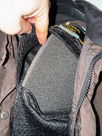 Giacca moto color marrone- linea OJ Urban- primavera/estate Provvista di minima protezione schiena e protezione spalle e gomiti. Possibilità di rimuovere le protezioni per facilitare il lavaggio . Lievi segni di usura (sfregamento) sulla protezione della tasca