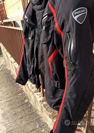 presenti 4 tasche frontali e due interne prese d'aria su braccia spalle e fianchi regolazioni a cinghia su fianchi e gomiti protezioni su spalle e gomiti trapuntino invernale removibile con cerniera scritte e loghi Ducati in vernice riflettente su braccia e schiena.