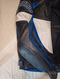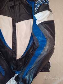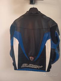 Giacca da moto Suomy quattro stagioni: - Tutta completamente in pelle, senza parti in tessuto - Parti traforate sulle maniche e sulla schiena per una migliore ventilazione - Gilet interno in tessuto imbottito, per utilizzarla nelle mezze stagioni - Protezioni integrate per le spalle, i gomiti e la schiena Usata poco ed in perfette condizioni, pelle con colori vividi e senza un graffio, la cambio solo perché mi é troppo stretta La vestibilità é molto attillata, la taglia é una 54 ma veste come una 52