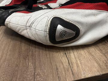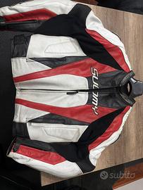 Giacca pelle suomy traforata in discrete condizioni un po usurata in certi punti senza strappi con gillet interno Taglia 52