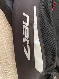 Capace di affrontare climi caldi e temperati, la giacca in rete Spidi Net 7 Windout è la scelta ideale per chi desidera una giacca fresca e leggera per la guida di moto sportive e sport-touring. Grazie ai suoi ampi pannelli in rete ad alta resistenza all'abrasione, garantisce una ventilazione efficace e costante. Inoltre, in caso di temperature più miti o di alti tassi di umidità, è possibile utilizzare lo strato rimovibile WindOut, una vera barriera contro l'aria più fresca, agganciabile all'interno della giacca. Il tessuto principale è un poliestere ad alta tenacità, che offre una buona resistenza all'abrasione e al taglio, mentre la rete utilizzata vanta una costruzione a maglia fitta che le conferisce particolare morbidezza. La giacca Spidi Net 7 Windout è certificata secondo EN 1621–1 e viene fornita con protezioni rimovibili di livello 2 su spalle e gomiti ed offre inoltre il paraschiena della serie Warrior, di livello 1 (normalmente da acquistare a parte). Sono presenti dettagli riflettenti 3M® Scotchlite® per una migliore visibilità notturna, mentre per garantire una maggiore ergonomia la giacca può essere agganciata tramite clip-stop a qualsiasi pantalone provvisto di passanti per cintura. Il sistema di restringimento sulla maniche garantisce una corretta aderenza dei protettori al corpo; sono presenti 2 tasche esterne e 1 interna nella giacca (sx) + 1 interna sulla membrana (dx). Unica imperfezione: grafica manica sx, la scritta NET 7 denota un piccolo segno sulla lettera E e la punta della T è ripiegata (vedi foto).