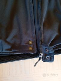 Giubbino 4 stagioni, fodera invernale staccabile, protezioni su gomiti e spalle, cerniere per migliorare la ventilazione con il caldo, doppia chiusura su collo e polsi.