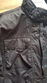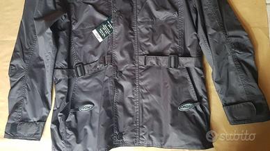 Giacca moto Suomy impermeabile con cuciture nastrate, errato acquisto, ottima finitura, con regolazioni ai fianchi, polsi e colletto. Possibile uso inserti protettivi spalle e gomiti, loghi e striature rifrangenti, mai usata ancora con cartellini, taglia S-M (veste comoda).