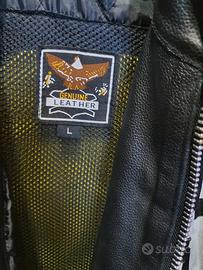 Giacca moto in pelle robusta taglia L uomo con logo Yamaha con protezioni braccia spalle schiena rivestimento invernale con zip post prese aria possibilità di agganciarlo al pantalone tramite zip
