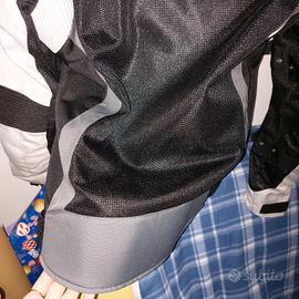 giacca mai utilizzata dotata di membrana impermeabile e traspirante ADVANTA removibile. L'esterno è realizzato in poliestere 600D con inserti in High strength mesh, mentre gli inserti elasticizzati sui gomiti e sulle spalle garantiscono un maggiore comfort nei movimenti. Dettagli come i regolatori volumetrici su braccia e fondo giacca, la chiusura collo micro variabile in 5 posizioni a bottone consentono al biker di personalizzare al meglio la giacca in ogni viaggio.tasche: 2 esterne frontali e 3 interne (1 tasca napoleone, 2 sulla fodera) La ventilazione è garantita dagli ampi inserti frontali, su braccia e schiena in High strength mesh. Regolazioni varie anche ai polsi: zip di apertura a doppio cursore per aerazione maggiore e flap a strap per la regolazione volumetrica. Completano il capo la presenza di inserti rifrangenti laminati per aumentare la visibilità del biker nell’uso notturno, l'inserto in neoprene su mento e collo per evitare il contatto diretto della giacca con la pelle e le protezioni SAFE TECH spalle-gomiti (gomiti regolabili in altezza).