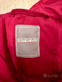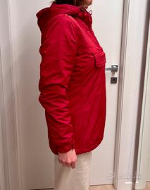 Giacca Napapijri originale modello anorak con cappuccio, colore rosso/bordeaux.