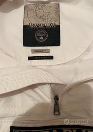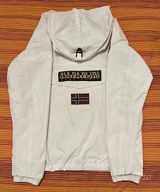 Giacca Napapijri taglia M, vestibilità regular, colore bianco, condizioni ottime, poco usata e senza difetti. CARATTERISTICHE TECNICHE: Tessuto impermeabile: 3000 mm colonne d'acqua Tessuto traspirante: MVP 3000g Chiusura a zip Fodera interna Tessuto principale: 100% poliammide riciclata Fodera: 100% poliestere riciclato