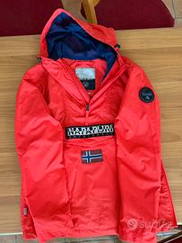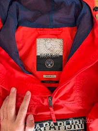 Bellissima giacca antivento napapijri colore rosso acceso. Garzata quindi non imbottita ma perfetta per la pioggia e il vento.