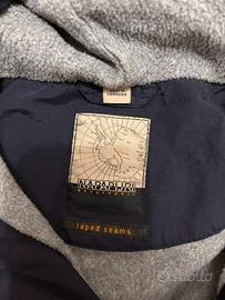 Giacca Napapijri originale da bambino, colore blu scuro, modello con cappuccio e mezza zip.