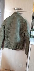 Giacca Napapijri 100 grammi mezza stagione, colore verde militare spettacolare. Tg. L slim, veste 48. Spalle 46 cm., manica 67 cm., torace 54 cm. lunghezza 69 cm. Ottime condizioni, nessuno strappo o buco, cerniere integre, lavata.