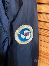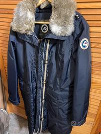 splendida gicca 3/4 blu con collo in pelo removibile e cappuccio . logo sul braccio taglia Xl donna usata pochissimo