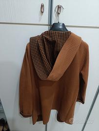 giacca aperta avanti senza bottoni colore marrone cammello con fantasia zampa di gallina