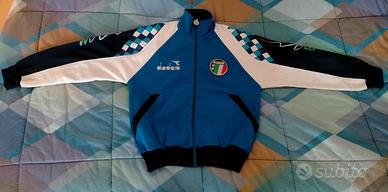 Vendo tuta di rappresentanza (giacca) della nazionale di calcio a Italia 90. Marca Diadora. Condizioni perfette praticamente pari al nuovo, anche se la tuta ha 30 anni. Taglia 38. Ascella ascella 45 Collo vita 55 Ritiro a Verona zona Borgo Roma. Spedizione altrove da concordare con l'acquirente. Contatto tramite sms, chiamata, whatsapp o app di Subito. Grazie.