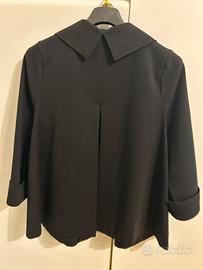 Giacca nera da donna CristinaEffe con maniche 3/4 con bottoni dorati e spigolo ampio dietro.