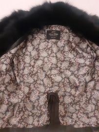 Vendo giacca da donna in vera pelle nera con colletto in pelliccia nera (sintetica). Modello corto, con due tasche frontali a pattina e chiusura a zip.
