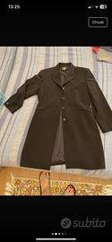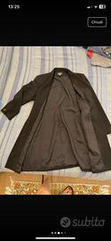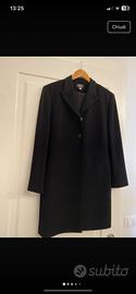 Giacca elegante lunga nera donna. Lunghezza metà coscia avvitata e con tasche laterale oblique ancora chiuse.
