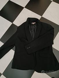 Giacca donna nera taglia Eur 54. Vendesi per cambio taglia. Nella foto di copertina si vedono dei puntini, ma sono un effetto di un riflesso. Nelle foto successive si vede infatti che il capo non presenta difetti, ma è totalmente nero.
