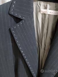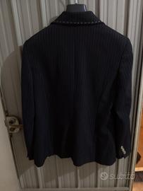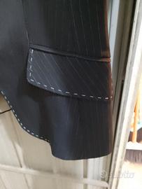 vendo giacca nera da donna gessata con cuciture a tratti bianca in ottimo stato TG 48 misure spalla 42 cm. larghezza totale della giacca chiusa 44cm circa lunghezza totale della giacca 70 cm