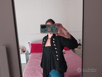 Giacca nera in stile militare Molly Bracken, elegante e trendy, con splendidi bottoni dorati. Perfetta per aggiungere carattere ed eleganza a ogni outfit, sia per un look casual che per occasioni più formali. Capo nuovo,mai indossato, ho solo tolto il cartellino. ottima occasione per rinnovare il guardaroba con un pezzo versatile e alla moda. Spedizione veloce e accurata.