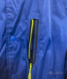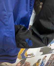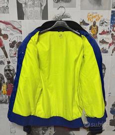 Giacca Nike Blu e Nera Zip frontale Tasca sul petto Polsini e fondo a costine Logo Nike sulla manica Interno giallo Adatta per le mezze stagioni Taglia S