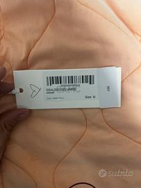 Giacca Liner OAMC x Fragment - Taglia M - Si tratta di una giacca trapuntata in collaborazione tra Fragment Design e OAMC nella colorazione "melone", caratterizzata da una stampa grafica floreale e dal co-branding. - Bottoni neri a contrasto, due tasche anteriori, polsini sulle maniche - Loghi del co-brand sul lato sinistro del petto - Prodotto in Italia, 100% cotone - Misure: lunghezza 69 cm - petto 59 cm - spalle 48 cm - maniche 55 cm