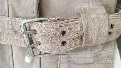 Giacca in pelle scamosciata da donna molto elegante di Zara in ottime condizioni, con cintura in vita con fibbia e chiusura anteriore.