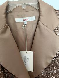 Giacca paillettes Jucca tipo giacca smoking con rever in raso dello stesso colore- color cipria/nude caldo effetto opaco