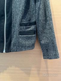 Giacca in panno taglia xs colore grigio e nera con apertua a cerniera. Tessuto cotone poliestere ed elastane