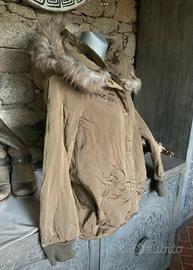 Tg.S (veste anche M) parka, giacca a vento leggera trapuntata ma non imbottita, cappuccio con pelliccia sintetica, bottoni a pressione! ♥️🏴☠️
