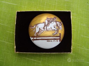 Spilla in ceramica tonda dipinta a mano, diametro cm. 5