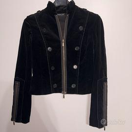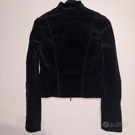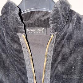 Splendida giacca firmata Patrizia Pepe Firenze, originale, caratterizzata da un design unico e ricercato. Il tessuto è un velluto a costine sottili (corduroy) di colore nero profondo, molto morbido al tatto ma strutturato.