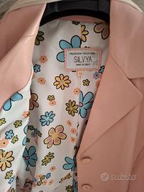 Giacca rosa in pelle e trama fantasia all'interno. Taglia 50