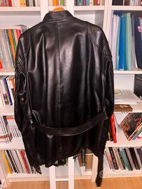 Giacca di pelle. Colore testa di moro molto scuro. Pella vera, pesa tantissimo e si capisce la qualità. Quando è addosso ti senti massiccio, visto la taglia conviene per persone alte più di 180/185 e sicuramente con le spalle larghe. In ottime condizioni. Prezzo poco trattabile e preferisco ritiro a mano.
