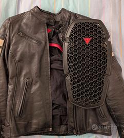 Giacca in pelle nera marca Dainese taglia 44 in perfette condizioni, comprensiva di paraschiena originale estraibile.