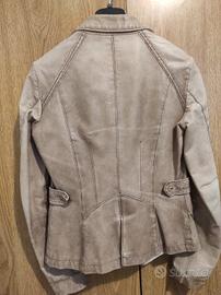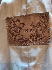 giacca Pinko in pelle beige foderata e con tasche . Segni di usura nelle maniche e nel colletto