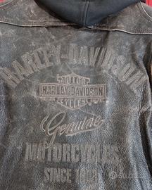 Giacca da uomo in pelle invecchiata Harley-Davidson, originale, con cappuccio removibile, taglia S/M europea, misure precise nelle ultime foto, usata ma in condizioni perfette, nessun difetto, prezzo non trattabile.
