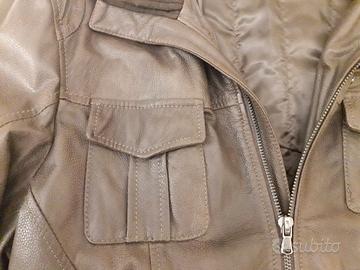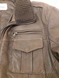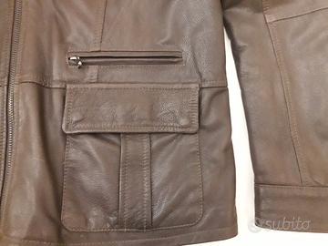 giacca vera pelle martellata marca Combipel con varie tasche anche interne e cappuccio impermeabile a scomparsa nel collo foderato con lana pettinata che risulta essere molto caldo a contatto con la pelle