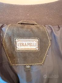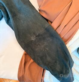 Giubbotto in renna taglia 50 colore verde scuro. Modello classico 2 tasche frontali con patta e bottone nentre all’interno altre 2 tasche una con chiusura a zip l’altra con bottone. Difetto una macchia sulla nanica sinistra (ultima foto)