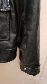 giacca in pelle sintetica nera, taglia 48, anche se veste 46, marca Pimkie, possibilità di mettere collo in pelliccia removibile, mai indossato.