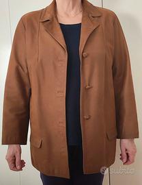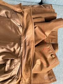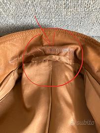 Giacca sartoriale vera pelle, linea dritta ampia e casual - condizioni ottime - usata molto poco . Due tasche con patelle - asole finte quindi al momento non si abbottona - si possono eventuslmente aprire - Manca un bottone davanti (regalo set di bottoni in vera pelle da sostiture) e un bottone sulla manica che invio e va cucito - fodera perfetta - Difetto: il colletto ha una striscia più scura e lucida dovuto al naturale assorbimento dell’untuosità della pelle del collo. Da pulire eventualmente. Misure: veste una 44/46 - Spalle 44 cm - lunghezza 73 cm