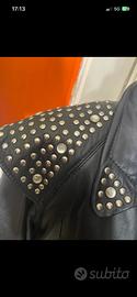 Bellissima giacca in pelle con motivi borchie su polso , spalle, collo e cintura . Lunghezza centro dietro cm 74