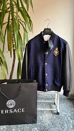 Taglia 46 ma di fatto veste molto grande. Bellissimo bomber in maniche pelle busto lana, color nero e blu. Maniche vera pelle, busto vera lana. Mai indossata ancora con busta appendino e scontrino regalo, comprata apposta per rivenderla quindi mai usata davvero non per modo di dire