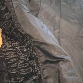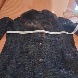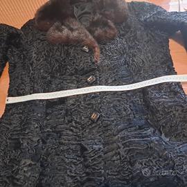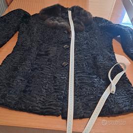 pelliccia astrakan nero con collo di visone marrone scuro